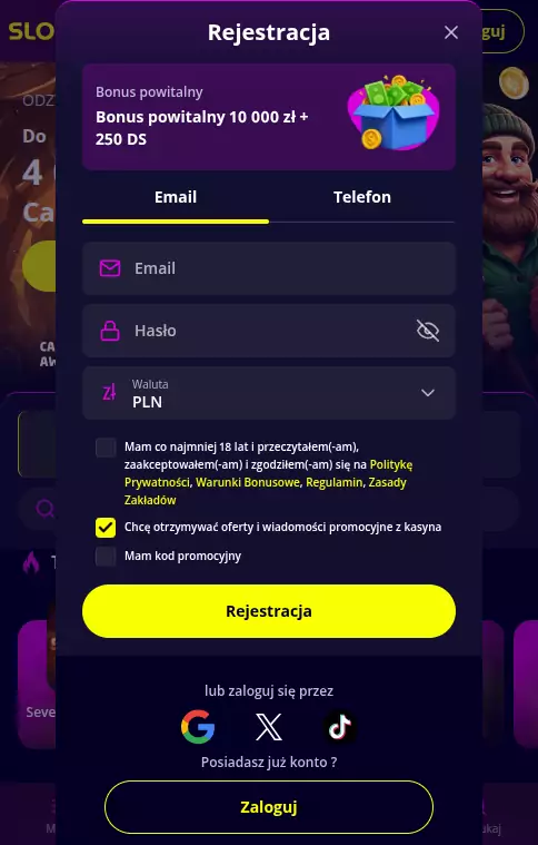 Po pomyślnym zakończeniu rejestracji możesz od razu dokonać pierwszej wpłaty i rozpocząć grę. Pamiętaj, że Slotoro casino wymaga potwierdzenia tożsamości przed pierwszą wypłatą środków, co jest standardową procedurą zgodną z przepisami przeciwdziałania praniu pieniędzy.